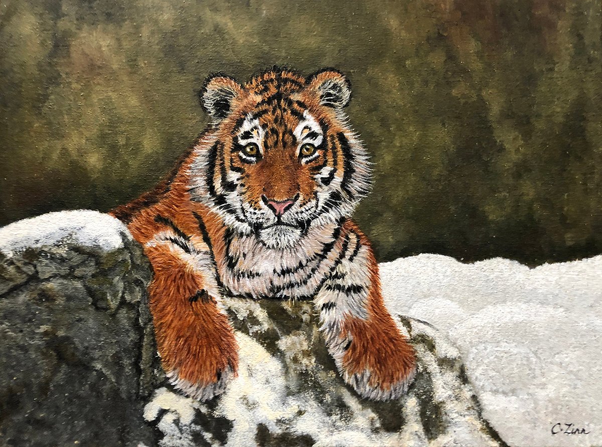 Sumatran Tiger Cub – Snowed In Original Oil Painting